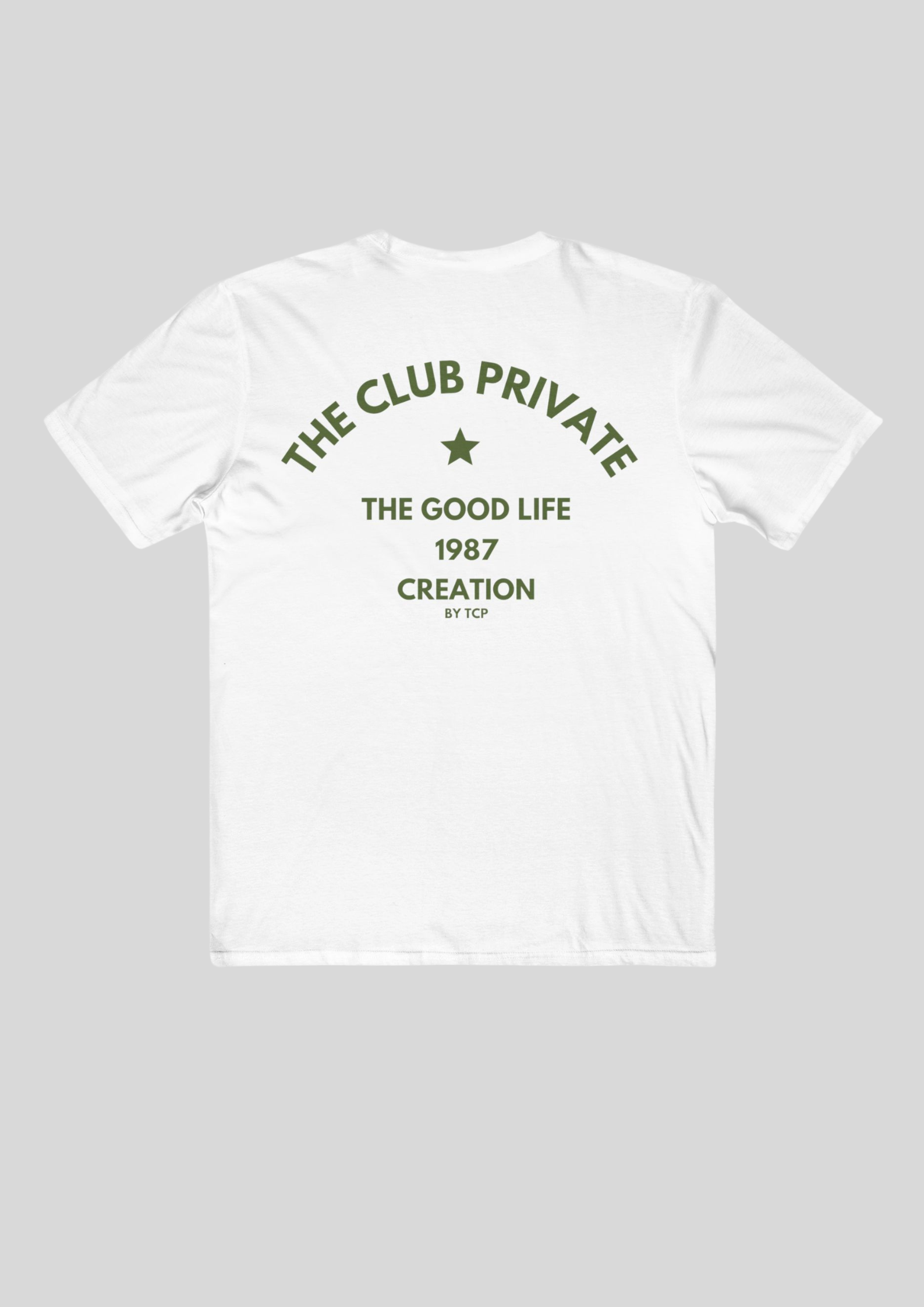 Notre t-shirt iconique revisité en kaki : minimaliste, audacieux, prêt pour les nuits d’été.